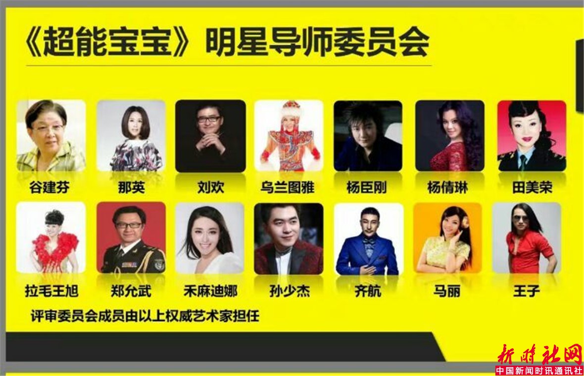 著名艺术家谷建芬、著名歌星杨臣刚、著名作曲家左林、著名歌星那英、著名歌星刘欢、著名歌星乌兰图雅、著名主持人StarTV监制台长孙少杰、著名歌唱家朱明瑛、香港明星电视台台长禾麻迪娜、著名相声演员白凯南和爱妻著名演员杨镜儒、著名舞蹈家陈爱莲;著名时尚专家时尚电视台台长齐航、著名表演艺术家田美荣、中国民族新派二胡拉唱表演艺术家拉毛王旭、中国著名摇滚乐队王子乐队主唱王子、男中音歌唱家郑允武、著名歌唱家杨倩琳、著名偶像影视明星宗鸣、著名国际明星S组合--李志勋、安七炫、申慧星等担任《超能宝宝》的明星导师;导师与宝宝携手拍摄,度过了愉快而充实的假期!