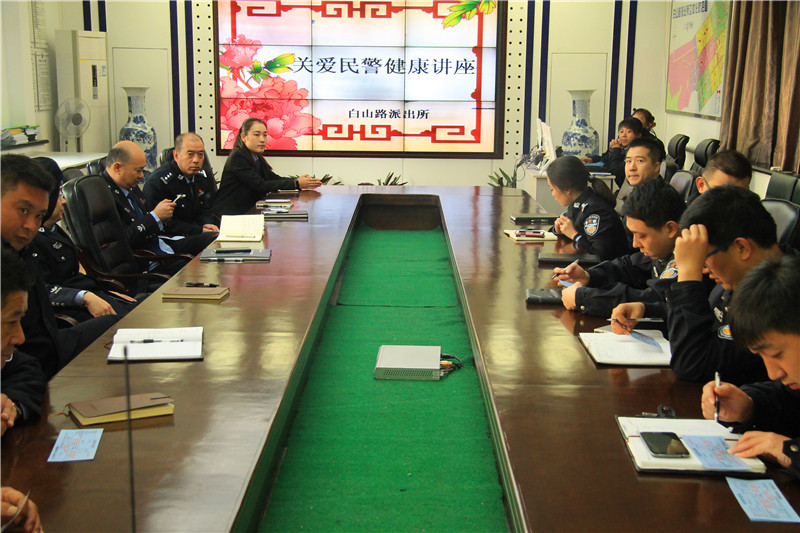 为进一步贯彻落实从优待警措施,体现关爱民警身体健康,缓解民警工作压力,消除身体疲劳,提高民警紧急情况下急救、自救、互救能力,树立科学健康的生活方式,有效提升队伍战斗力和凝聚力。11月2日上午,大连市沙河口区白山路派出所,特邀专业健康管理讲师,就突发意外事故自救与互救、雾霾的危害及预防、健康的生活方式及警察职业疾病的预防等相关知识,为派出所民警们开展了一堂健康知识讲座。