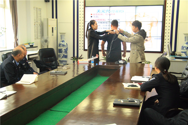 讲座中,专业讲师充分结合派出所民警的实际工作,用生动的语言、鲜活的事例,通过讲解、举例、问答等形式,以图文并茂讲解,现场示范技巧等方式重点讲授了各种紧急意外事故时应该如何进行人工呼吸、心脏复苏、雾霾的危害及预防、职业病的防治等专业知识,有针对性地给大家提供了预防和诊治措施。同时针对警察职业特点,专家讲师还从中医角度,具体介绍了高血压、颈椎病、肩周炎、腰椎间盘突出等职业疾病的预防和治疗,并当场请民警上台进行理疗、血压测量,现场给民警进行了示范和演练,提醒民警要养成良好的工作生活习惯,预防和减少各种疾病的发生。