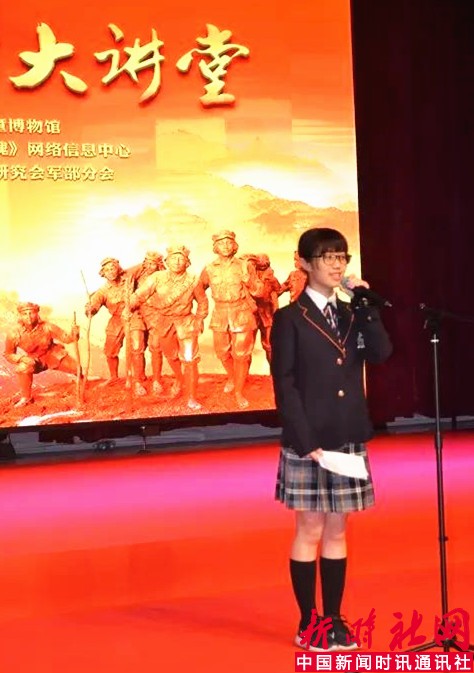 北京新四军研究会军部分会艺术团带来了《过雪山草地》的合唱,此次合唱由张晨曦同志担任领唱,韩廷琦同志以手风琴伴奏。随后,由二十四中学生代表、长征纪念活动征文获奖者刘思阳同学朗诵《贺子珍的故事》。接下来,全国政协委员、解放军装备学院副院长刘建为大家讲述了康克清奶奶的故事。被誉为满门革命,举家长征的开国少将李中权的后代李洋讲述了自己同为红军共同参加长征的奶奶王理诗和姑姑李中秋的故事。老红军、中纪委常委刘型之女刘松柏同志以感人的《一双草鞋的故事》奉献给本次讲堂。毛主席特型演员杨清瑞老师朗诵了《长征》,神情语调与毛主席可谓酷似。随着会场上放映屏播放了《巴山女红军》的片花,该剧编剧远山为我们带来了红四方面军传奇女将领张琴秋同志的事迹。红军后代田竞则意犹未尽地讲述了自己重走长征路的故事。最后,北京新四军军部分会艺术团的同志们在邹丽民,罗解难两位领唱的带动下以一首《山丹丹花开红艳艳》作为本次讲堂的压轴节目。