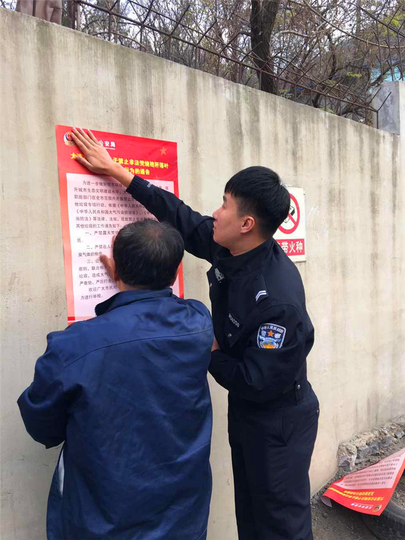 为切实做好防火宣传、贯彻落实“”爱我家园“”第三战役专项行动,11月17日下午,大连市沙河口区马兰派出所社区中队,对辖区易产生荒草、落叶焚烧区进行集中宣传。民警现场张贴宣传单,讲解防火知识,有效提高了群众的防火意识。