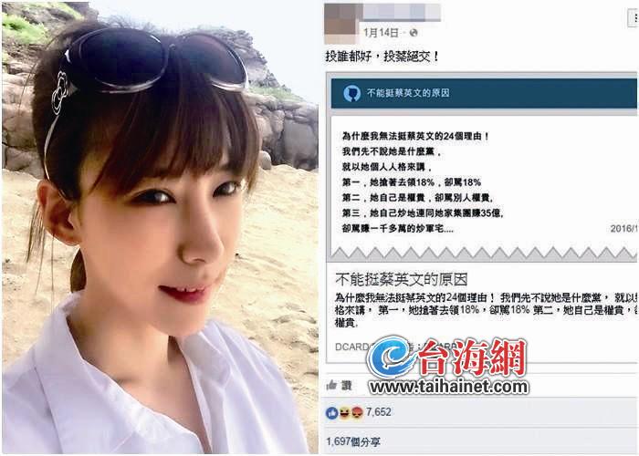 新时社网5月29日讯综合台媒报道台湾一位李姓女网友因在个人脸书(Facebook)上分享不能挺蔡英文的原因一文,引起从四面八方来的网友论战,甚至被辱骂好的花瓶装大便。她被攻击后决定提告,却在开庭时,被台南地检署的检察官教训:脑袋装大便评论没什么,难不成要说你很有脑?对于李小姐的说法,检方昨天予以否认,但拒绝公开庭审录音。