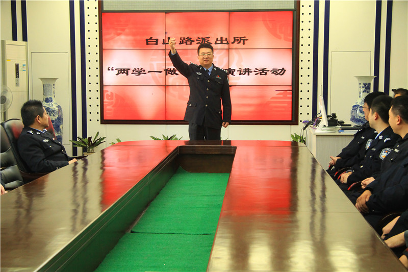 为进一步推进“两学一做”学习教育,提升勇于担当、敢于奉献的意识,激发广大干警恪尽职守、创先争优的工作热情。11月15日上午,大连市沙河口区白山路派出所,组织开展““两学一做”主题演讲活动,活动由教导员 盛有武 同志主持,派出所各部门领导及干警踊跃参加。