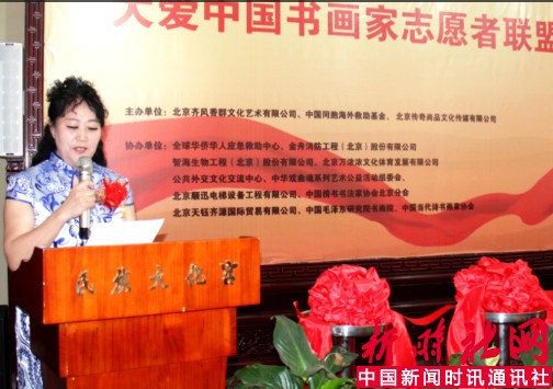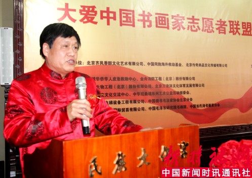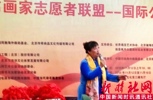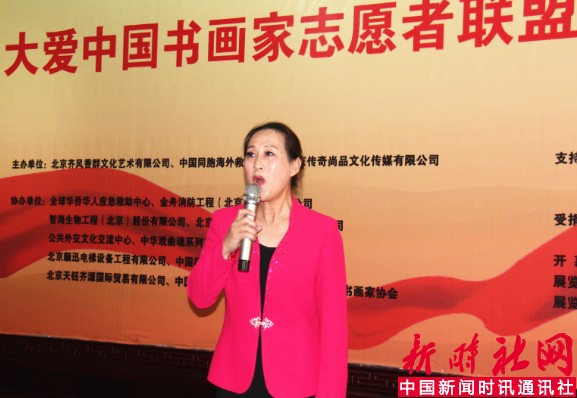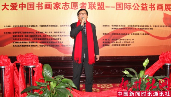 大爱中国书画家志愿者联盟国际公益书画展开幕式于2016年11月12日上午10时在北京市文化宫正式拉开序幕,此次大会由北京齐风香群文化艺术有限公司、中国同胞海外救助基金、北京传奇尚品文化传媒有限公司联合举办。指导单位:中国侨联。协办单位:中国民族艺术馆、全球华侨华人应急救助中心、