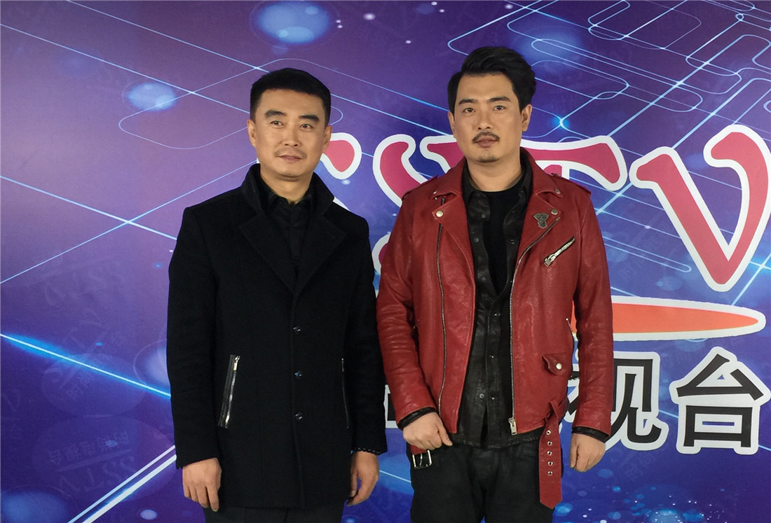 ↑张扬与著名演员徐光宇录制《全球时尚大拜年》后合影留念