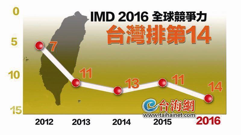 瑞士洛桑管理学院今天公布2016全球竞争力报告,受到岛内经济增长表现不佳影响,台湾今年竞争力下降到第14名。