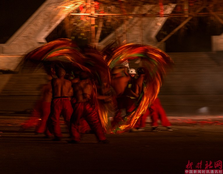 12月17日和18日晚,确山铁花在4A级景区河南省驻马店市确山县老乐山风景区南门广场美丽绽放,央视一套春晚节目组进行了全程拍摄,当地群众近万人前往观看。