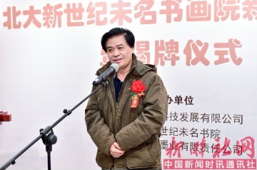 中国诗书画研究院副院长、中国民族书画院秘书长,崔茂森先生发言并在现场向北大新世纪未名书院赠送字画一幅。