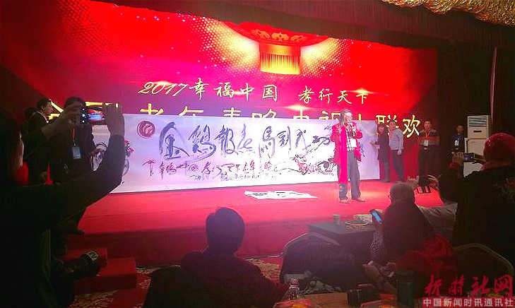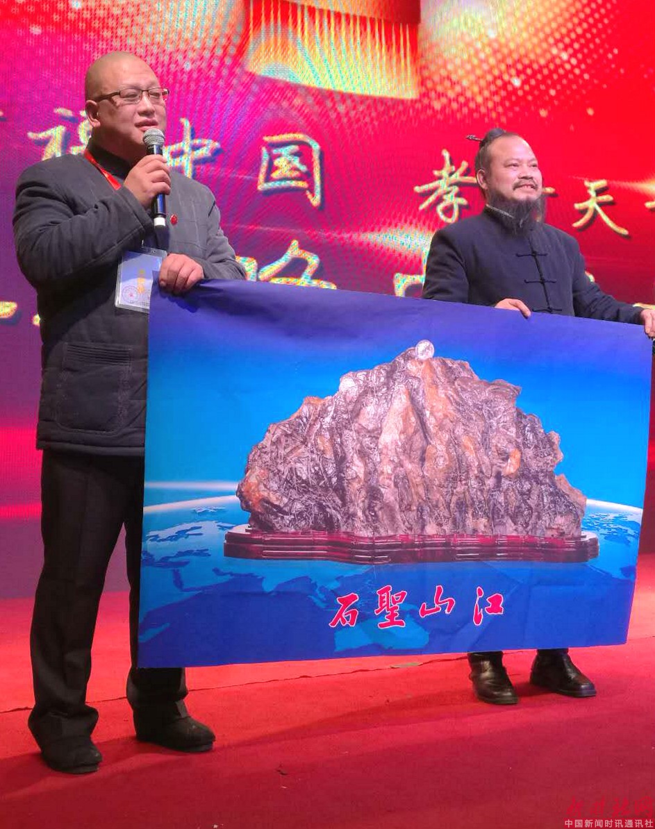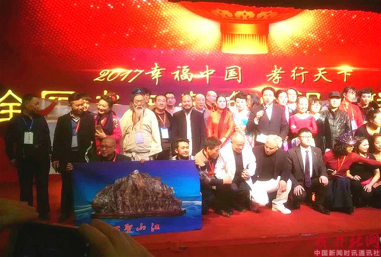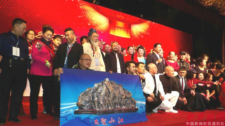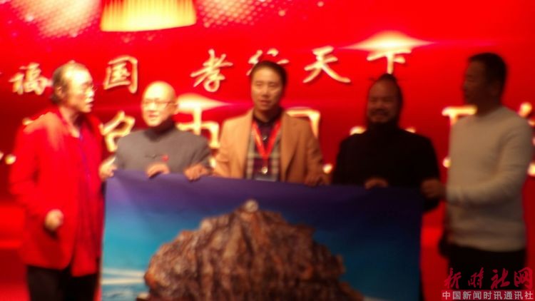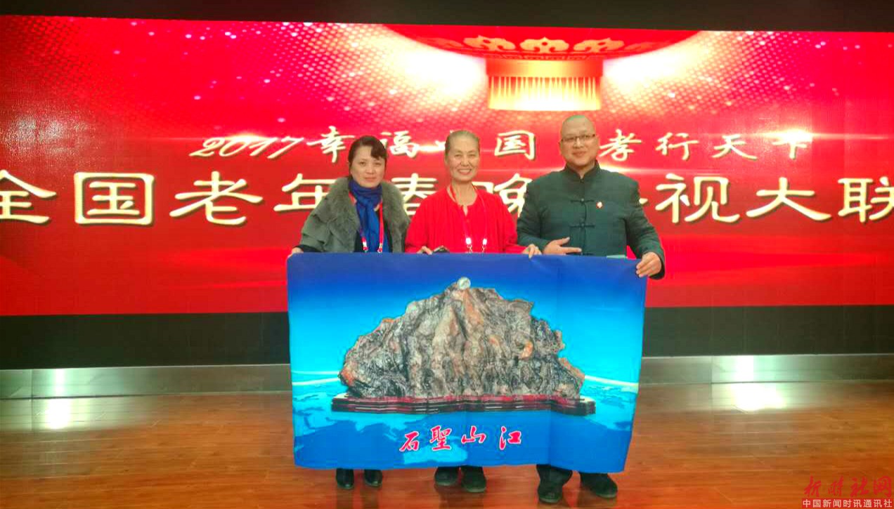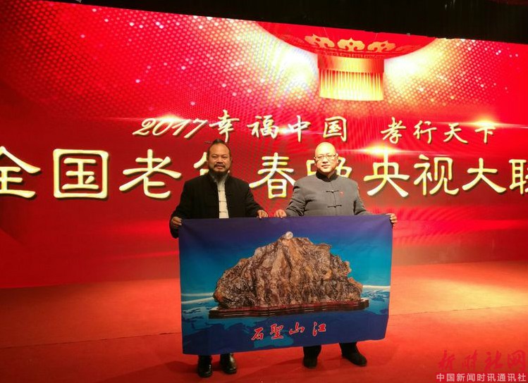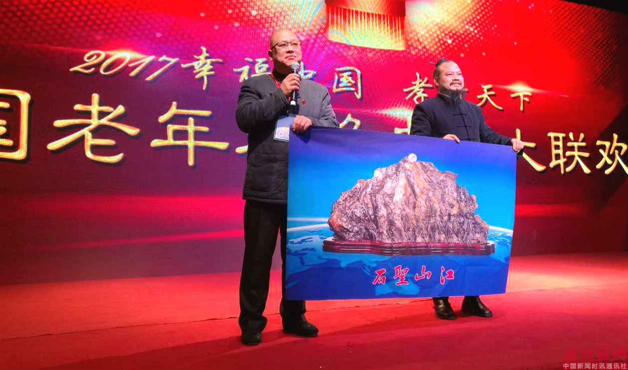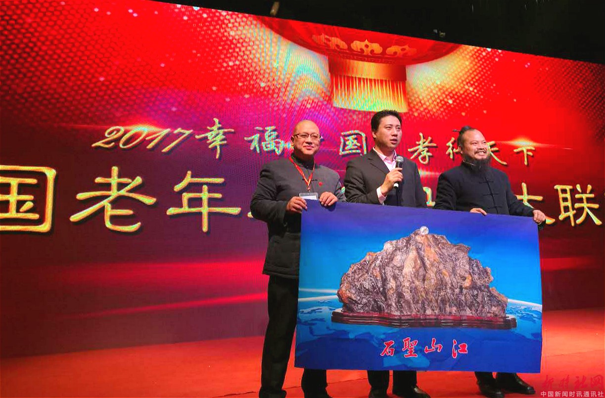 送吉祥,刘三的江山圣石把盛世文化吉祥图腾祝福送给老年联欢晚会。