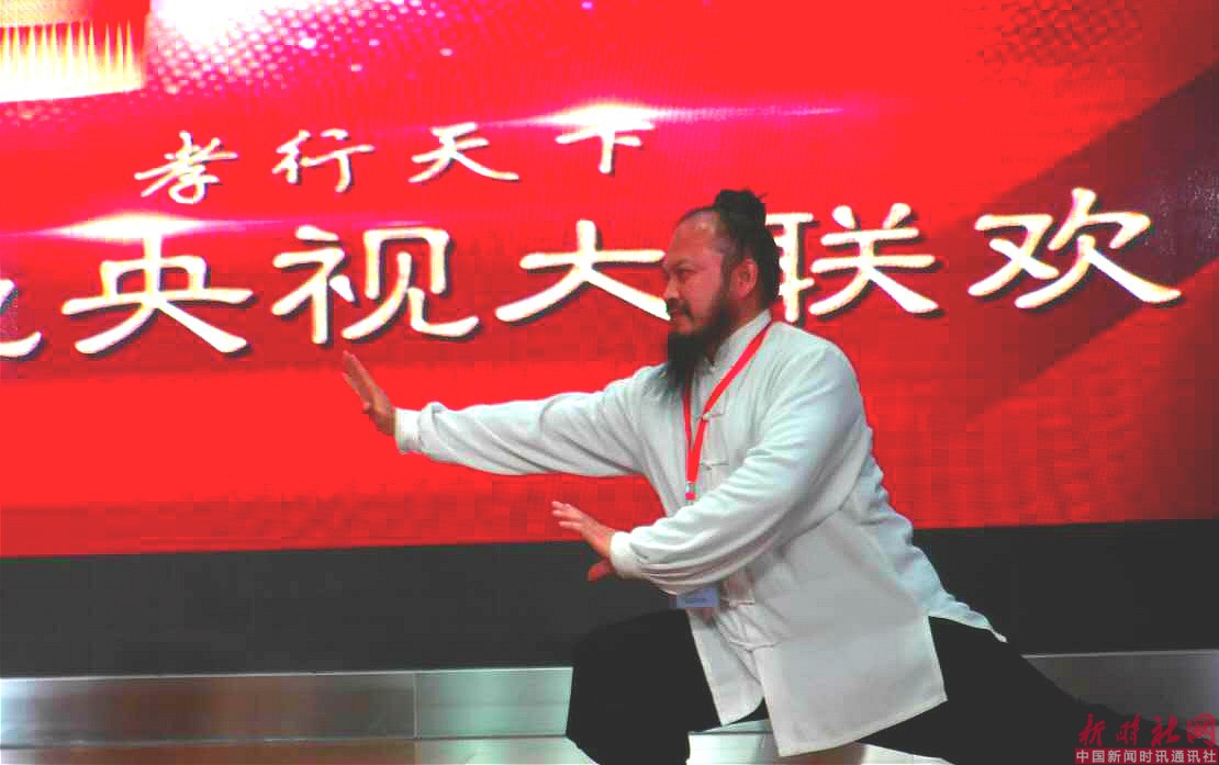 武当山十三代内家功传人,武当武术研究总会副会长善心道长,把吉祥祝福送到会场。把玄武延龄保健酒带到会场,祝福全国老人们身体健康!