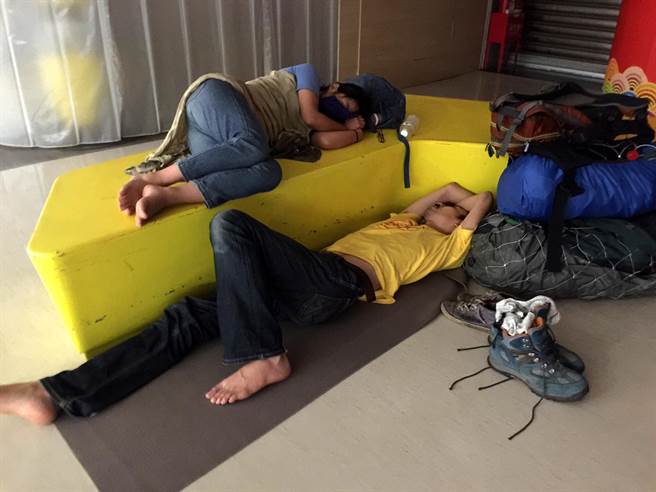 据台湾《中时电子报》报道,桃园机场二航厦经过一天的淹水停电肆虐,3日清晨,大多积水已经退去,但电力尚未完全恢复供电,不少旅客因班机延误,倒睡机场等待登机。