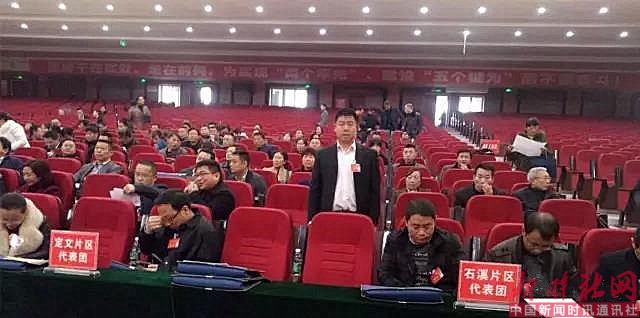 返乡农民工、县人大代表彭绪洋(站立着)在两会大会上,也踊跃建言献策。