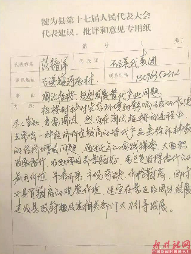 犍为县第十七届人大秘书处将返乡农民工彭绪洋的建议汇总到《会议简报》中。