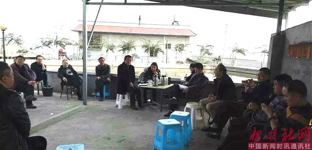 中共犍为县委副书记唐兵带领县府主管局、委、办和石溪镇领导在昊昱农业基地开现场办工会议。