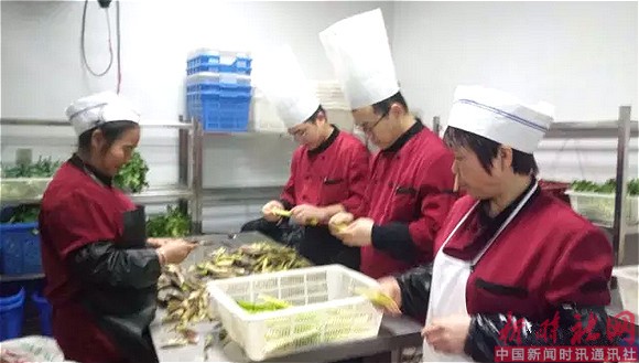 我犍为县两会的厨师们正在将熊猫竹笋烹制为美味佳肴。