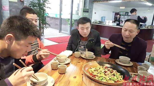 犍为县两会代表在品尝用熊猫竹笋烹制的美味佳肴。