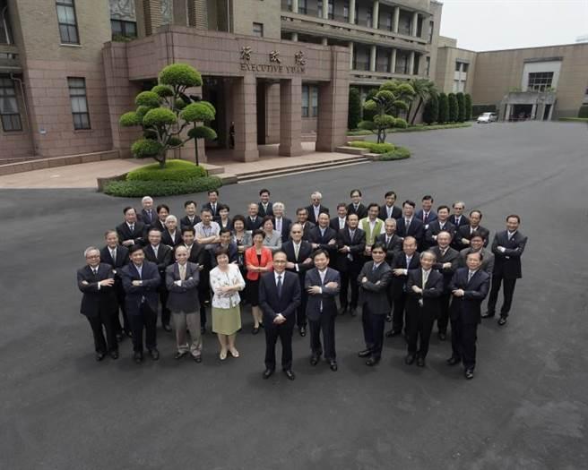 林全内阁成员拍大合照,被笑是房仲业大合照,林全是店长。(图片来源:台湾中时电子报)