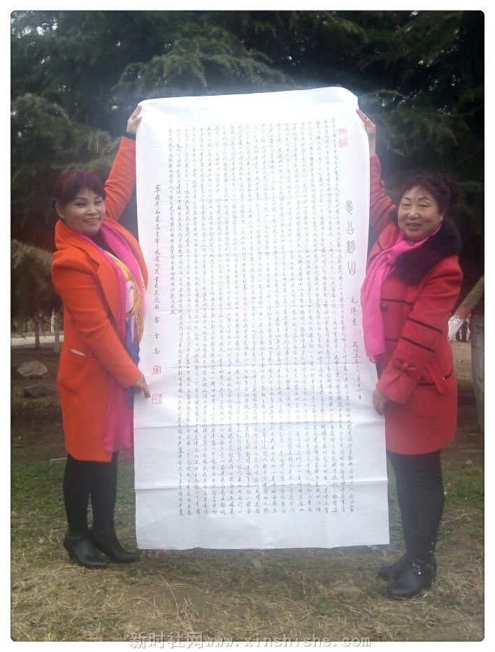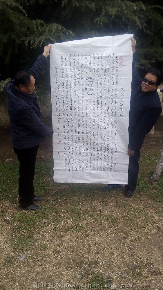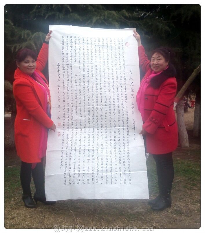 【中国新闻时讯通讯社特约记者陈运发鲁山县报道】:2月26日下午,鲁山县农民书画家雷金志书写的六尺书法‘老三篇’在鲁山县城中心公园亮展,受到游客赞赏……