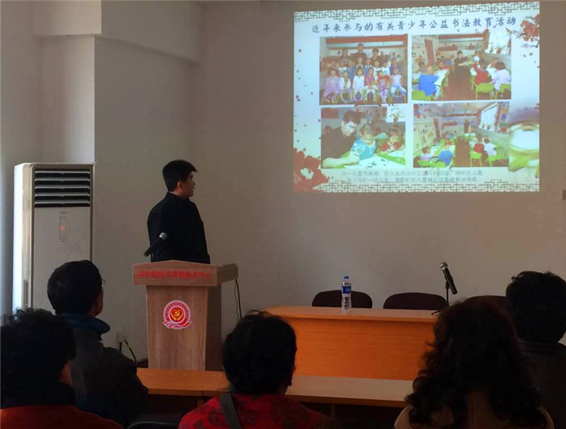 交流会中,5名关心下一代工作者、社会志愿者代表,相继上台发言作经验交流。「马栏街道满庭芳社区关工委」常务副主任 石翔 同志,就具有特色、代表性的“爱心跳蚤市场”的关心下一代工作经验,与大家做了交流分享。「西苑社区关工委」秘书长 郭连心 同志就西苑社区的品牌工作“学雷锋阳光小队”“知心爷爷奶奶”“亲子乐园”以及社区如何统筹协调各种资源开展具有西苑社区特色的关工委工作与大家做了交流分享。「大连奥创steam机器人活动中心」辖区单位关工委代表 杨敬文 同志就关心下一代“我们在行动” 主题,关于如何利用自身机器人科技教育,培养关爱下一代素质提升,参与达成为幼儿园义务提供科普教育课程,为文苑小学举办义务科技冬令营和夏令营,把把“玩中学、做中学”的素质教育理念推广下去。教育孩子从小对科技养成浓厚的兴趣。还有关爱弱势群体,弘扬社会正能量与大家分享交流了经验。而76岁高龄的「西苑社区关工委」常务副主任 宁鹏 同志,自从小学教师的岗位退休后,就一直从事着关心青少年下一代的相关工作,有着丰富的工作经验,交流会上毫不保留的将经验传授分享给了大家。「中国文化魂书画研究院」副院长「中国海峡两岸书画家协会大连分会」副会长 何涛 同志,作为弘扬传统文化的志愿者,阐述了国粹书法对于国家、社会、青少年下一代的重要影响,解读了2017年中国政府对校园传统文化教育,尤其是书法教育工作的重视和政策,并提出“弘扬传统汉字文化 承传国粹书法艺术”倡议书,为辖区青少年开设公益书法教室。5位关心下一代工作者、社会志愿者代表的经验交流、精彩发言,受到了在场参会人员的赞同、认可和欢迎。