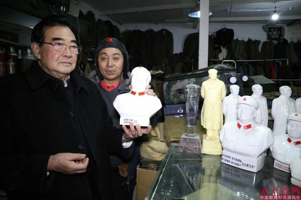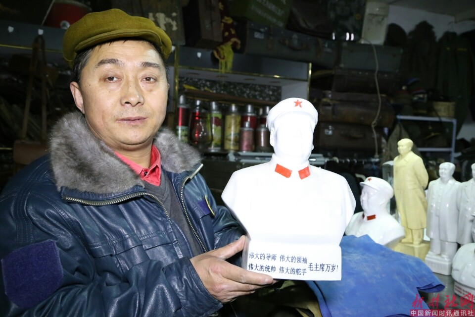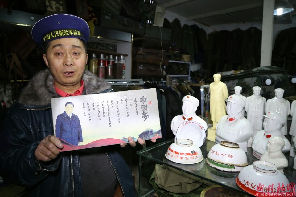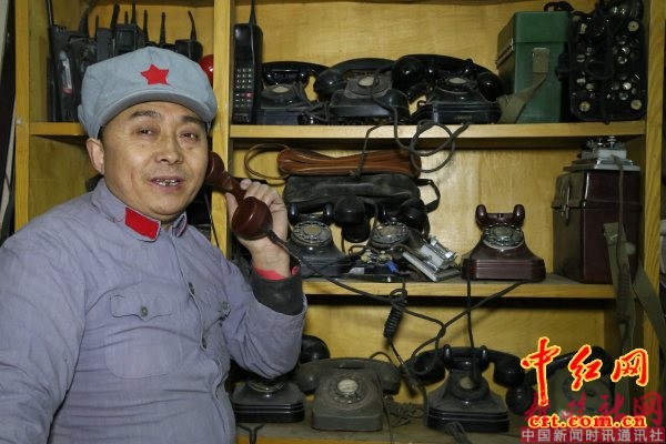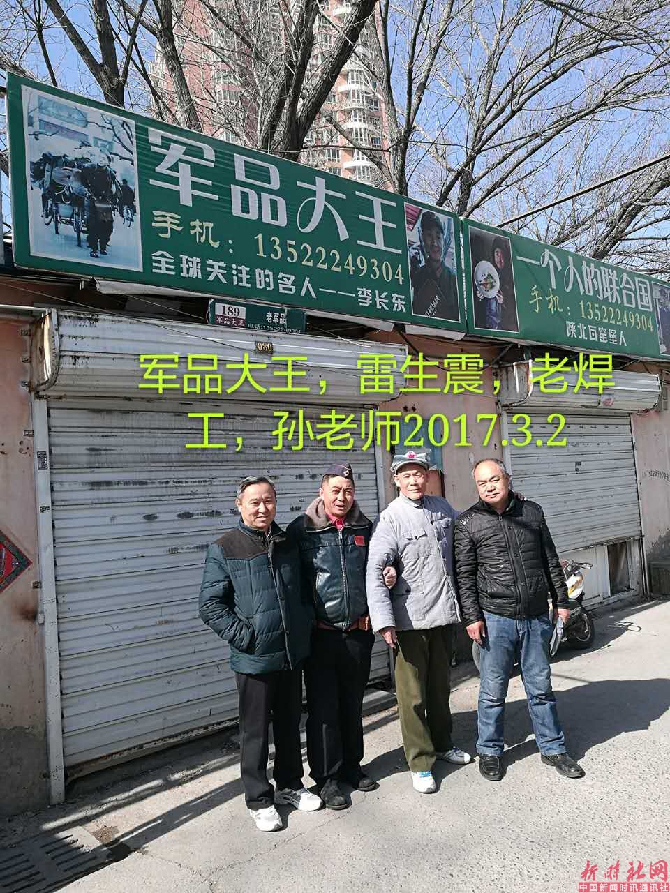 2月18日,军品收藏家李长东与扮演周总理的特型演员赵申秋等在一起交流红色文化。当日,军品收藏家李长东穿着其收藏的老军装,摆弄着那些经历过战火洗礼的军用品,沉浸在军事历史的回忆中。被誉为“军品大王”的李长东,今年40多岁,中等身材,来自陕西延安瓦窑堡的一位农民。生长在革命老区的李长东从小就对老式军用品有着浓厚的兴趣,他1990年在老家开始正式收集军用品,1995年李长东带着他的收藏品来到北京练摊儿,雅宝路、官园、秀水、联想桥、报国寺等都留下过他的身影。他主要收藏经营二战以来及文革期间国内外军事用品,藏品有第二次世界大战的美国铝饭盒、意大利与日本的军用钢盔、世界大战军服、坦克瞄准镜、坦克兵手套、德国军用望远镜、军用发报机、日军侵华时用过的军用喷雾器、抗战时期八路军的袖标、战时地形探视仪、老式军用电话、军用徽章、军用灶具、军帽军靴等等五花八门的老式军用品应有尽有。据李长东介绍,张艺谋拍电影、崔永元拍《电影传奇》都到他这里买过道具服装,毛新宇将军也到他的摊位上买过军用品。李长东对他的藏品如数家珍,信手拿起一件都能说出其的出处与用途,透着他对这些老物件的喜爱。李长东有“三爱”,即爱收藏、爱逗笑、爱交友,在军品收藏的艰辛道路上,李长东充分发扬了延安人“自力更生、艰苦奋斗”的创业精神 。李长东在闲暇时间喜欢看军事与红色文化的书籍。军事爱好者喜欢到他的店铺淘宝参观与交流,听他讲述军用藏品背后古今中外的战争故事。军品收藏家李长东说,在和平时期军品收藏寄托了人们对那种抛弃一切保家卫国的忠诚与勇敢精神的向往,军品收藏也是一种传播红色文化的爱国主义教育形式。李长东经常穿上其收藏的各式老军装,摆弄着那些经历过战火洗礼的军用品,陶醉于军事历史的回忆中,他的军用藏品也见证着世界与中国的国防装备发展历程。播红色文化(组图)
