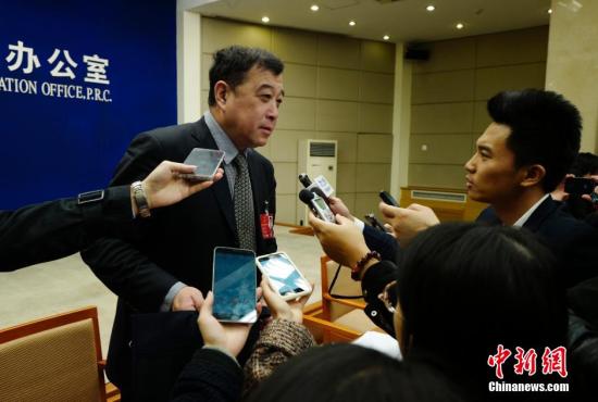 3月9日,全国人大代表、全国人大外事委员会委员、北京大学台湾研究院院长李义虎在国务院新闻办公室记者会结束后,仍被不少记者追访。当天,国新办邀请部分人大代表、政协委员就两岸关系发展议题与记者进行交流。中新社记者 侯宇 摄