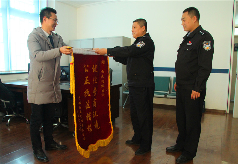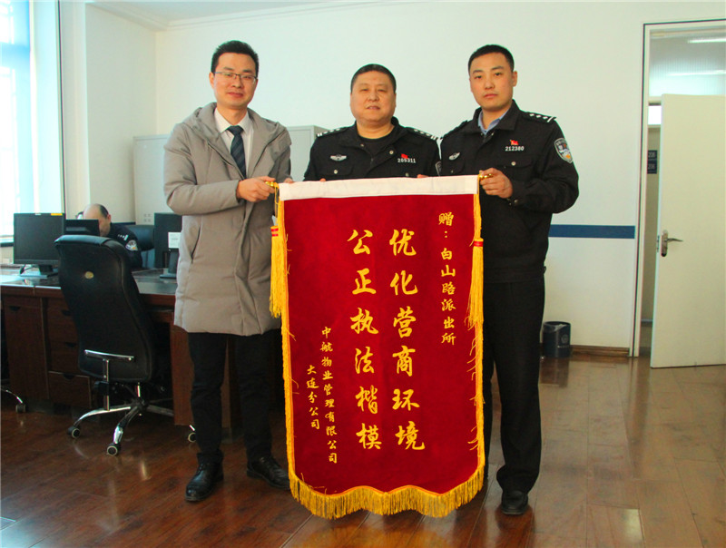 3月10日下午,中航物业管理有限公司大连分公司的领导,来到大连市沙河口区白山路派出所,送上了一面写有“优化营商环境、公正执法楷模”的锦旗,对白山路派出所调解物业服务纠纷,维护周边治安环境所做的工作表示感谢。