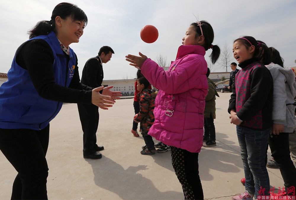 郑州海关工作人员和孩子们做游戏 郭东伟 摄
