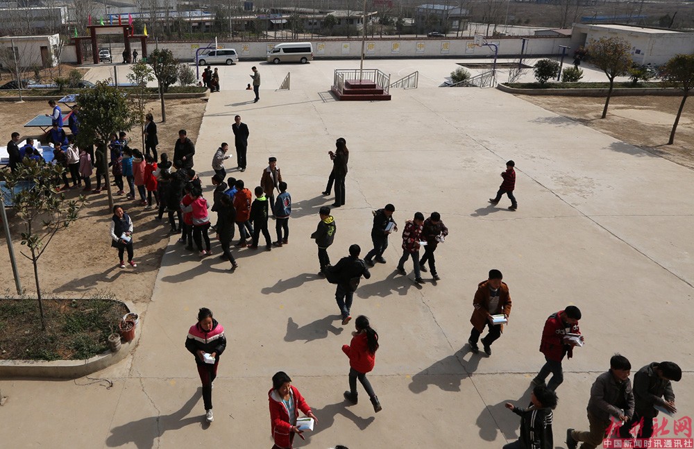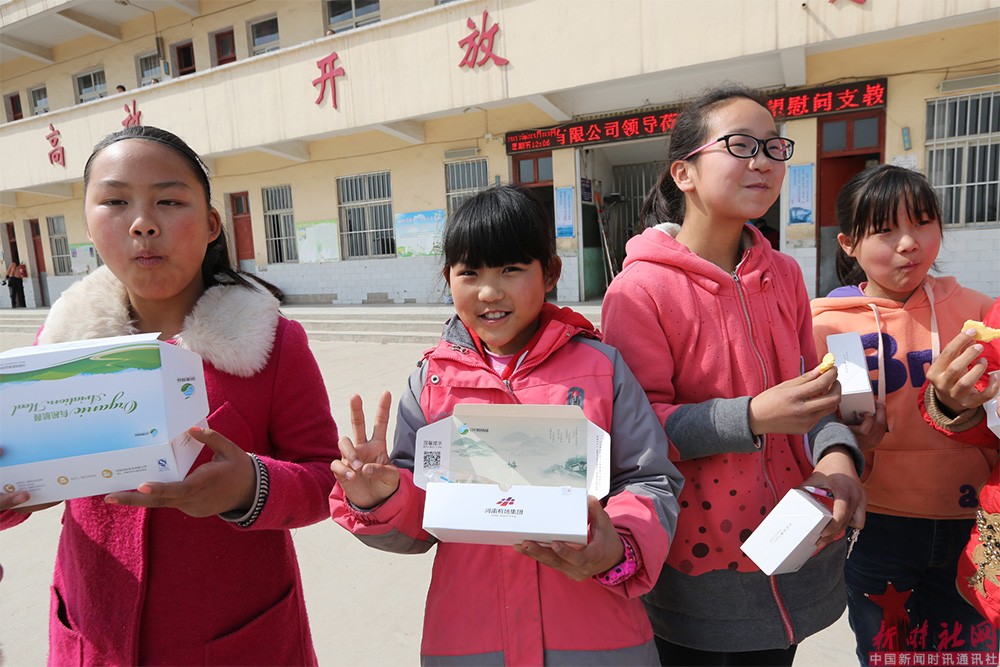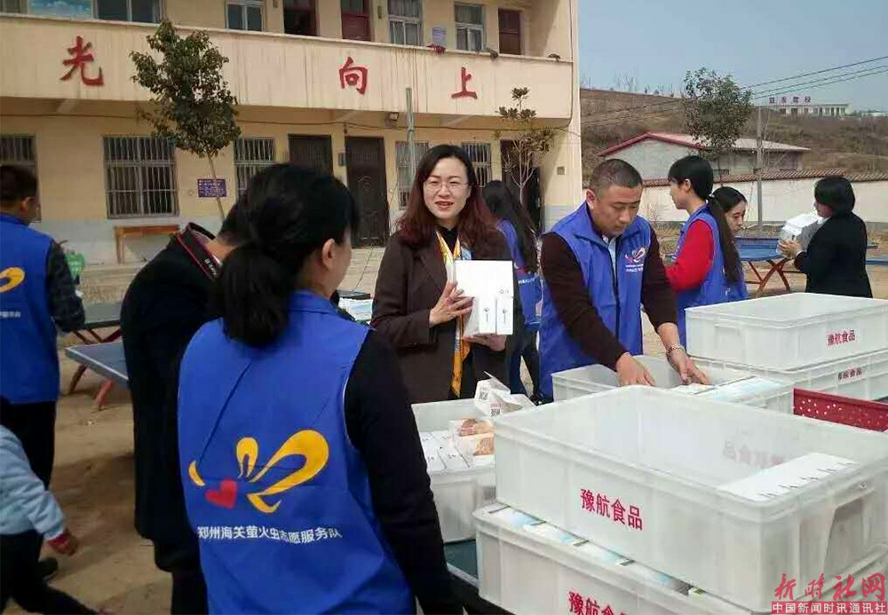 3月3日上午,郑州海关的志愿者们来到鲁山县梁洼镇第五小学,陪孩子们画画、写作业、做游戏,还送来400份航空点心餐,让孩子们不出校门就能吃到飞机上的点心。