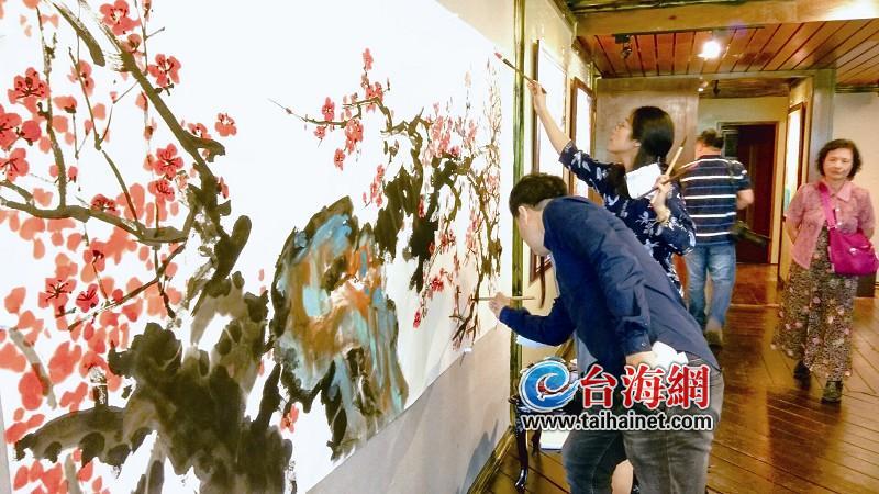 揭幕仪式后,与会的两岸画家现场挥毫,抒怀竞技。台湾艺术大学的四位画家同场挥毫,创作了题为《泰安群峰》的山水画作。领衔挥毫的台湾艺术大学书画系系主任李宗仁表示,两岸画家现场联合创作这种形式相当新颖,有利于互相切磋。广州美术学院的四位画家则与胡九蝉一道,轮番上阵合作完成了水墨大写意作品《报春图》。参与创作《报春图》的广州美术学院中国画学院副教授林霖介绍,报春图寓意两岸文艺交流的春天正在到来。两岸的伙伴一起创作是种很好的交流。好玩就好,享受愉悦的过程,珍惜这个切磋的机会。