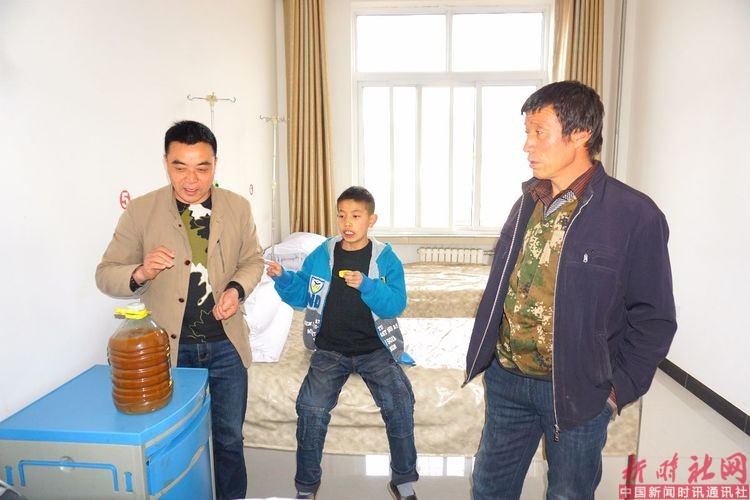 我们11日早晨6点吃了点便餐又开始出发去往甘肃省庆阳市合水县固城乡行政自然村小张涛的家,13岁的张涛自从2011年患上‘心包积炎肝腹水’以来,去了几家医院治疗不见效果,病情赿来赿重,这次“尚德众联”公司孙华领董事长给他带来了夲公司的专家专门为他发酵的“中药口服液”为他免费饮用。我们坐上了中巴车行程了100多公里的盘山路,颠簸了3个多小时,中间转了两次车,下了车简单吃些早点又租车去了张涛的家,最终在该乡医院病房里见到了张涛和他的爸爸、妈妈。