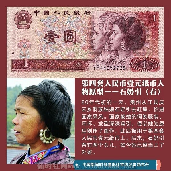 1980年的一天,贵州侗族姑娘石奶引赶集巧遇画家采风。她的画像后被用于壹圆纸币上。她现已当上外婆。
