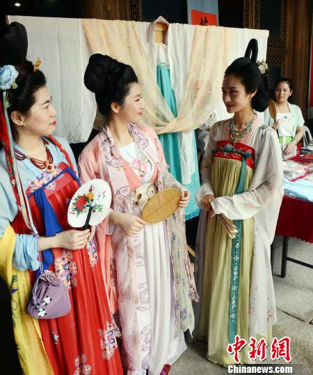来自全国各地40余家汉服制作机构及相关手工产品的代表,现场展现包括汉服文化、传统手工技艺文化在内的中华传统文化的精华所在。 记者刘可耕 摄