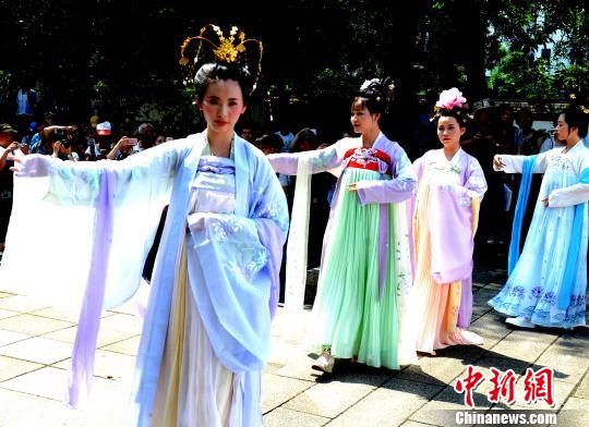 衣带飞扬的汉服展示则带领现场全体来宾领略了属于历史传承的美丽和浪漫。 记者刘可耕 摄