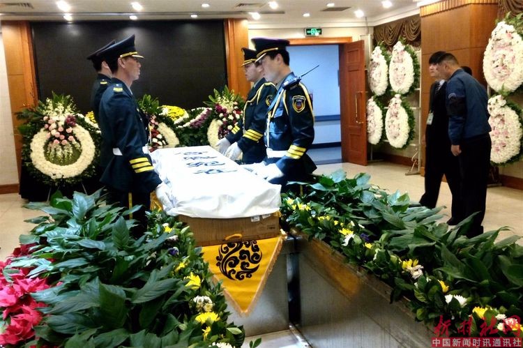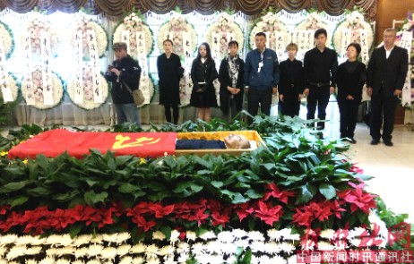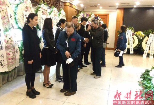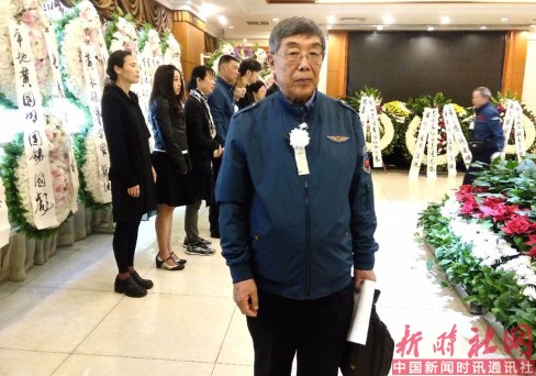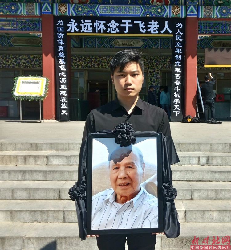 中国空军宣传部原部长朱鸿之子(一1)朱宏佑前来参加于飞前辈悼念