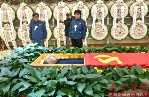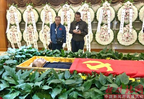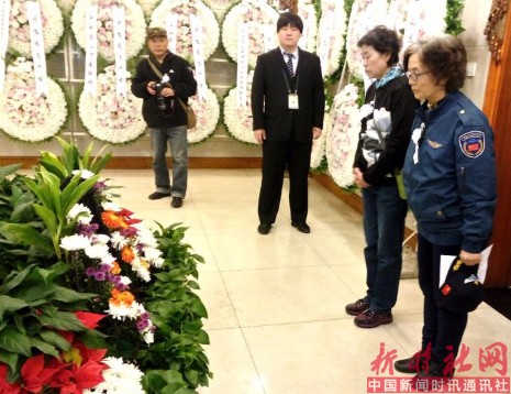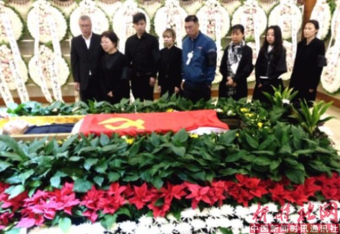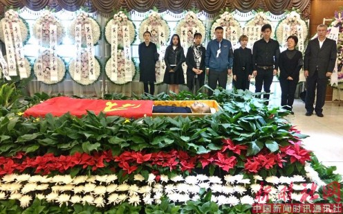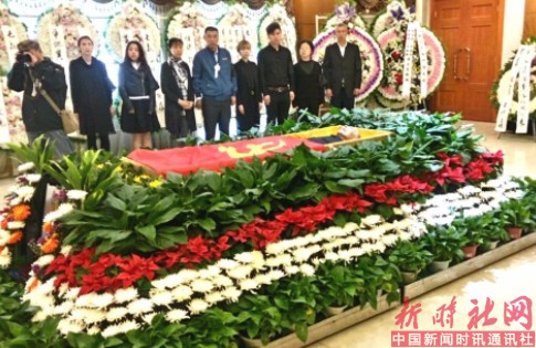 任空军原副司令邹炎女儿,(左二)邹晓黎前来悼念于飞前辈。