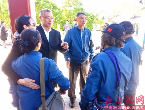 东北老航校副校长白起孙女(左二)白玉与于飞前辈子女共同送别于飞前辈