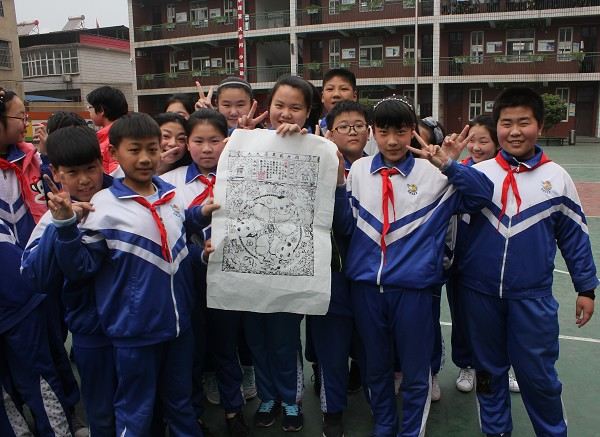孩子们争与年画合影