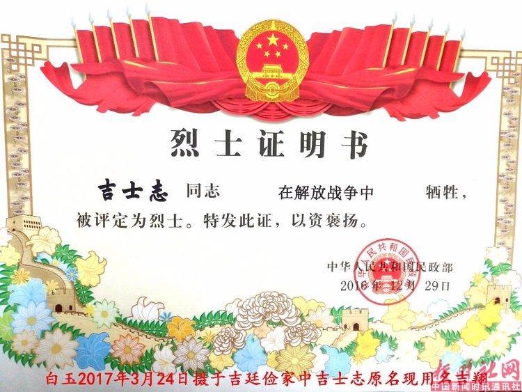 2016年我参观了长春航空表演大会,大会结束后主委会送了我的一顶东北老航校纪念帽子,我也赠给吉廷俭并给他带上,他发自内心说出了三个没想到。第一个没想到他能活到现在过上这么好的生活、第二个没想到,他能够找到父亲的烈士墓得到国家给的捐款、笫三个没想到通过许玲找到我们起义人员后代又结成了好朋友。他兴奋的还给我们唱了两段地方歌曲京剧和侣剧,让我们大开眼介,老人家唱的很有味道,唱调很准。