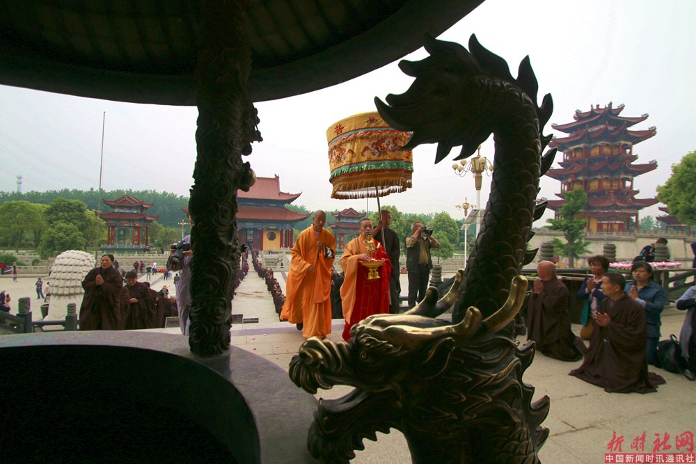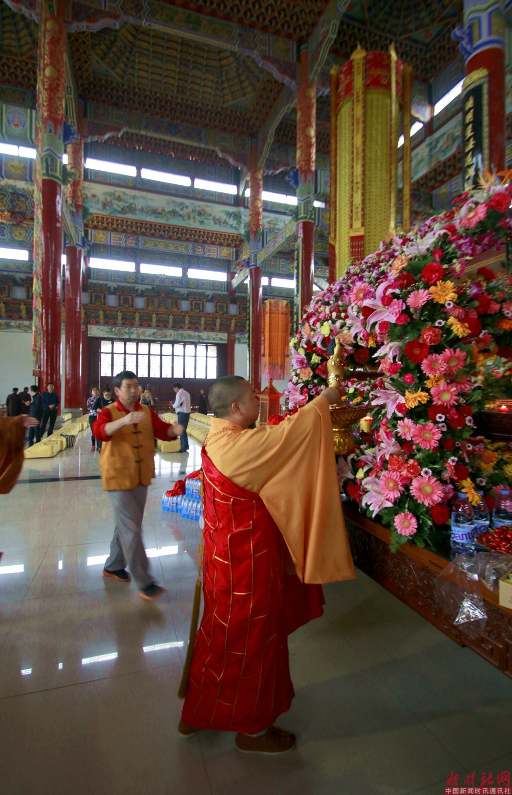 5月3日,河南省汝南县的南海禅寺迎来了一年一度的浴佛节,大雄宝殿烛盏通明,鲜花盛装,经幡飘扬,香客如云,一派节日盛景。