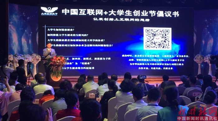 (总组委会主任万守杰博士宣读中国互联网+大学是创业节倡议书)