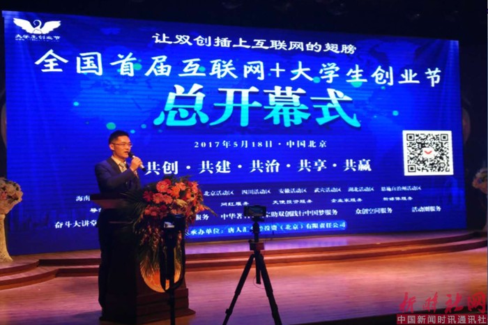 山西站采编部:全国首届互联网+大学生创业节一直是大学生以及创业者期待的日子, 2017年5月18日下午全国首届互联网+大学生创业节总开幕式在北京市唐人汇集团总部举行。