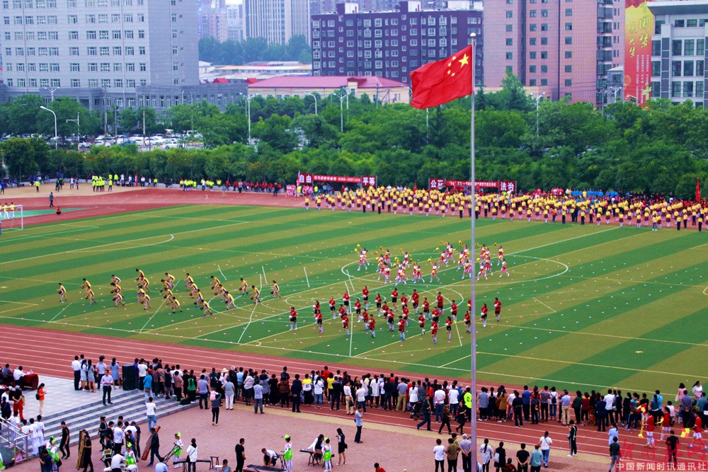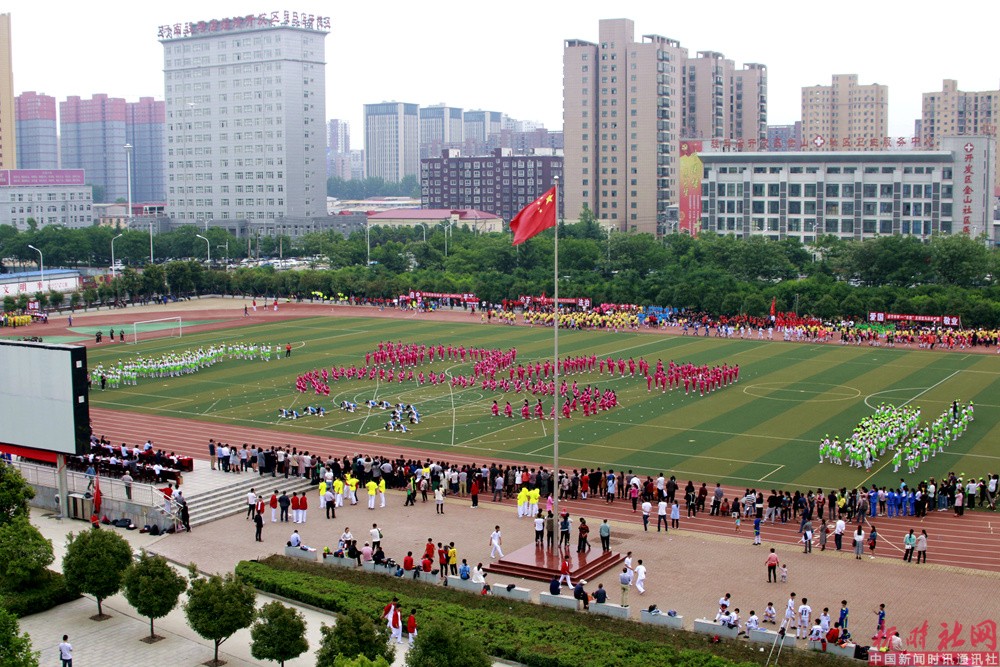 讲话结束后,六个学校的体操队表演了丰富多彩的校园体操节目,特别是驻马店市第23小学表演的独具特色的集足球、篮球、啦啦操、花瓣扇为一体的大型校园团体操,完美的创意,精湛的表演令人耳目一新,引来阵阵喝彩声,交口称赞。