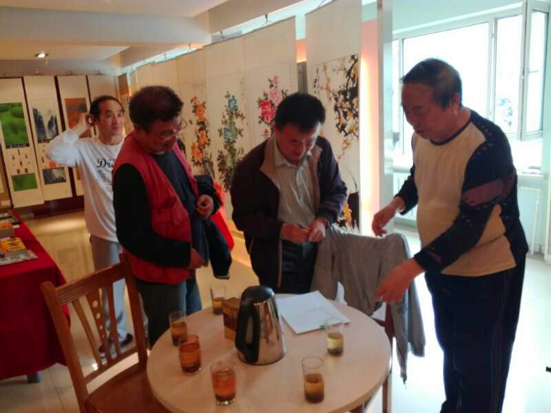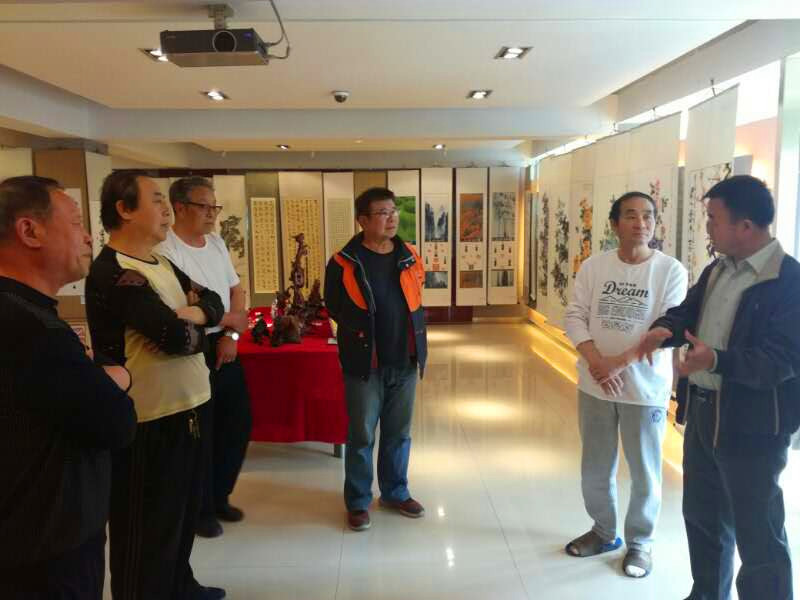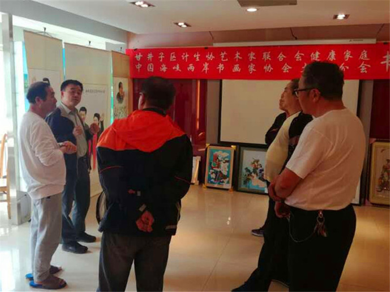 2017年5月11日,「大连台胞联谊会」副会长 周琪 先生一行,来到了《甘井子区计生协艺术家联合会o中国海峡两岸书画家协会大连分会“健康家庭”书画联展》,以书画续亲缘,促两岸文化艺术交流。「中国海峡两岸书画家协会大连分会」会长 孙乐廷、秘书长 王晓江、常务理事 张华茂、理事 李军 热情的接待了台湾来宾。