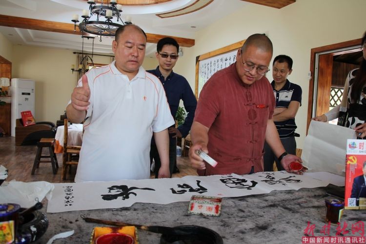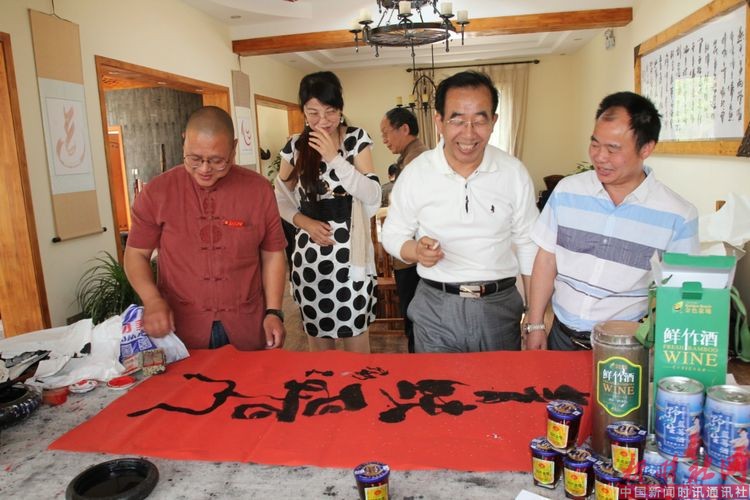 今年“五一"劳动节阳光明媚,风和日丽。时代名家相聚北京后花园欢度鸡年国际劳动节泼墨挥毫盛赞艾帕酒业后花园系列酒隆重上市【江改银现场报道】 庆五一,话发展。2017年5月1日,首都北京后花园景区名家企业家,领导嘉宾欢聚一堂,共同祝福艾帕酒业金来发后花园品牌酒隆重上市…… 出席艾帕酒业金来发后花园品牌酒丁酉五一上市品鉴会的领导嘉宾有: 中国商业联合会秘书长刘福顺,时代名家总策划江改银,央视主持人张万宏,北京怀柔影视公司董事长高艳才,著名书法家姜在茂、马祥彪、李仓、高永祥、张术群、刘三、刘振浩等,社会活动家胡明良,景泰蓝企业家周桂华相聚北京后花园景区,进行文化交流,共庆五一国际劳动节,用劳动诠释节日内涵,传承优秀中华文化,传播正能量,迎接党的十九大召开共襄盛举…… 中国第一罐金来发红酒艾帕酒业董事长刘功礼,北京后花园景区总经理董天佑对领导和嘉宾的莅临表示热烈欢迎,在品鉴会上发表热情洋溢的讲话,表示将名人文化,名企文化,历史文化,禅茶文化,白酒文化,红酒文化,冰酒文化,孝爱文化,武德文化,佛道文化,养生文化融入后花园景区旅游文化,把后花园打造成国家五A级景区,进一步促进京城旅游文化产业的健康发展!