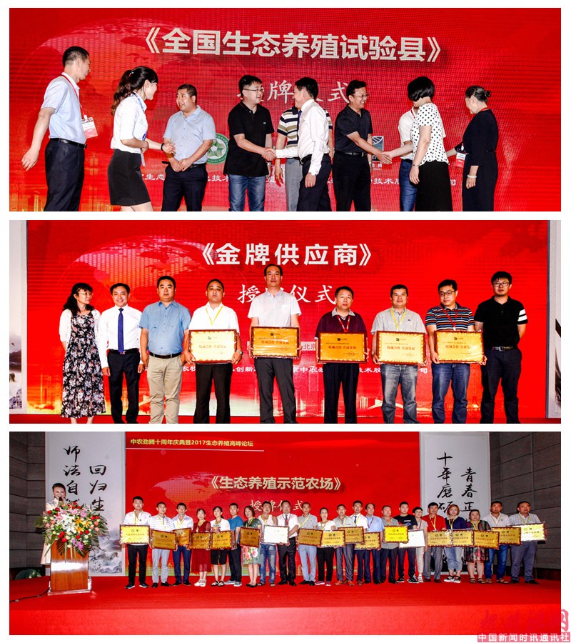 本次会议还面向全行业征集、评选出一批坚持生态养殖理念,运用生态养殖好技术、好模式取得良好社会效益和经济效益的养殖户、养殖场作为“生态养殖示范服务站” “生态养殖示范农场”,面向全国推广。同时,为推动“生态农牧2022计划”的百千万工程,确定了首批5个“全国生态养殖试验县”并授牌,以助新农村产业转型升级,实现生态农牧产业的健康发展。