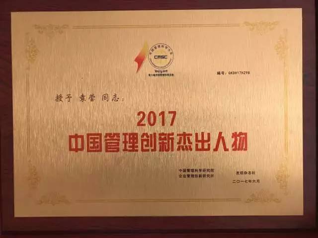 袁莹老师被授予《2017中国管理创新杰出人物》