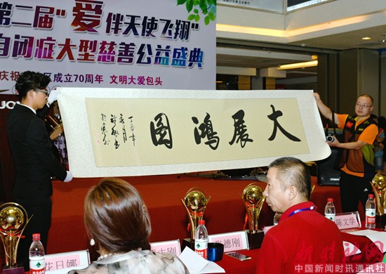 现场还展示了北京书画家张德刚和包头市天骄书画院赵裕启、昆区文联主席范金平赠送的的精彩字画。