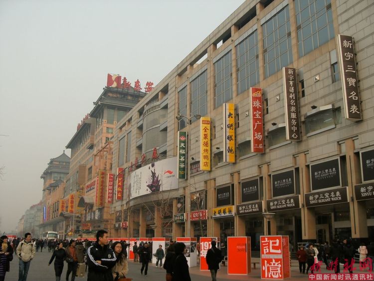王府井,王府井大街是北京一条著名的商业街,位于北京市中心的东长安街北侧。南起东长安街,北至中国美术馆,全长约1600米,是北京最有名的商业街,有七百多年历史。王府井的日用百货、五金电料、服装鞋帽、珠宝钻石、金银首饰等,琳琅满目,商品进销量极大,是号称“日进斗金”的寸金之地。王府井大街的整治规划,将其定性为“北京商业第一街”,商业风格以“现代”、“新潮”为主,整治改造后的王府井大街,从金鱼胡同到与长安街相界的南口,810米长略呈波浪型的大街两侧分布着十二个大型商场,除原有的百货大楼、工艺美术大楼、穆斯林大厦、外文书店、协和商场、新东安商场外,还新建了百货大楼新楼、东华服装、明辉大厦、好友世界、丹耀大厦、东方广场等六个大型购物娱乐商务综合性商厦,大型商场一条街的格局在北京可谓是独一无二的。