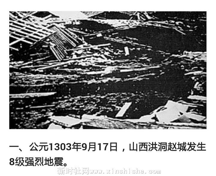 一、公元1303年9月17日,山西洪洞赵城发生8级强烈地震。