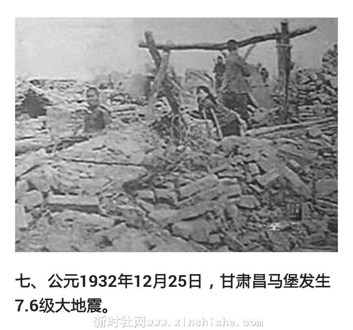 七、公元1932年12月25日,甘肃昌马堡发生7.6级大地震。